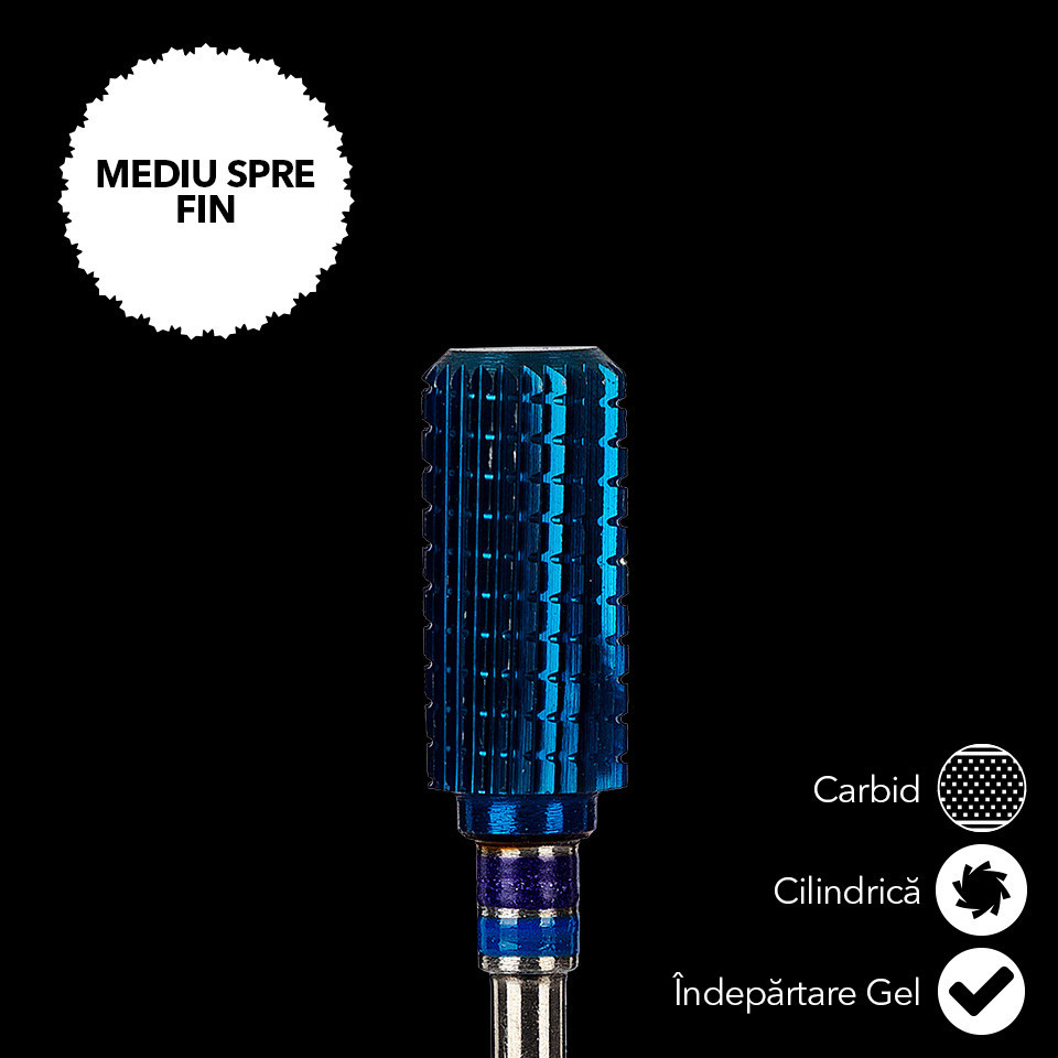 Capul de freza are o formă cilindrică, care îl face ideal pentru a crea o varietate de forme și finisaje. Duritatea medie asigură o performanță optimă, fără a deteriora unghiile.