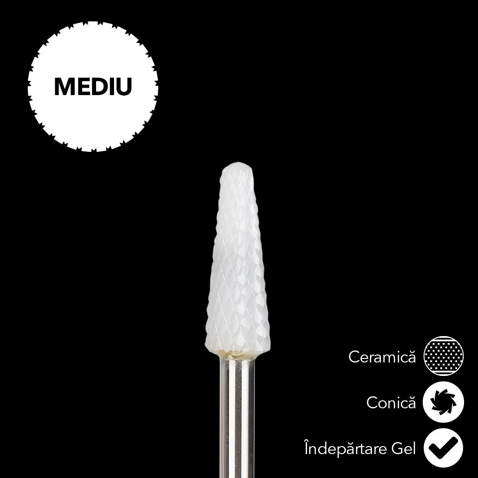 Capat Freza Ceramica LUXORISE Conica, duritate medie L0413T este compatibila cu orice model de freza de pe piata, avand dimensiune standard. Bitul pentru freza este ideal pentru modificarea si ingrijirea unghiilor naturale, a cuticulei si a pielii intarite . Freza este potrivita atat pentru manichiura, cat si pentru pedichiura, deoarece permite manevrarea cu precizie si faciliteaza stilizarea cuticulelor si a unghiilor. Finisajele la cele mai inalte standarde calitative garanteaza un confort inalt in timpul utilizarii.