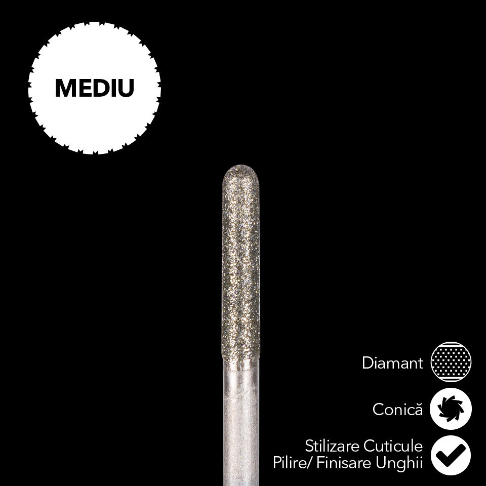Capat Freza Diamant Conica, #04 este compatibila cu orice model de freza de pe piata, avand dimensiune standard. Bitul pentru freza este ideal pentru modificarea si ingrijirea unghiilor naturale, a cuticulei si a pielii intarite . Freza este potrivita atat pentru manichiura, cat si pentru pedichiura, deoarece permite manevrarea cu precizie si faciliteaza stilizarea cuticulelor si a unghiilor. Finisajele la cele mai inalte standarde calitative garanteaza un confort inalt in timpul utilizarii.