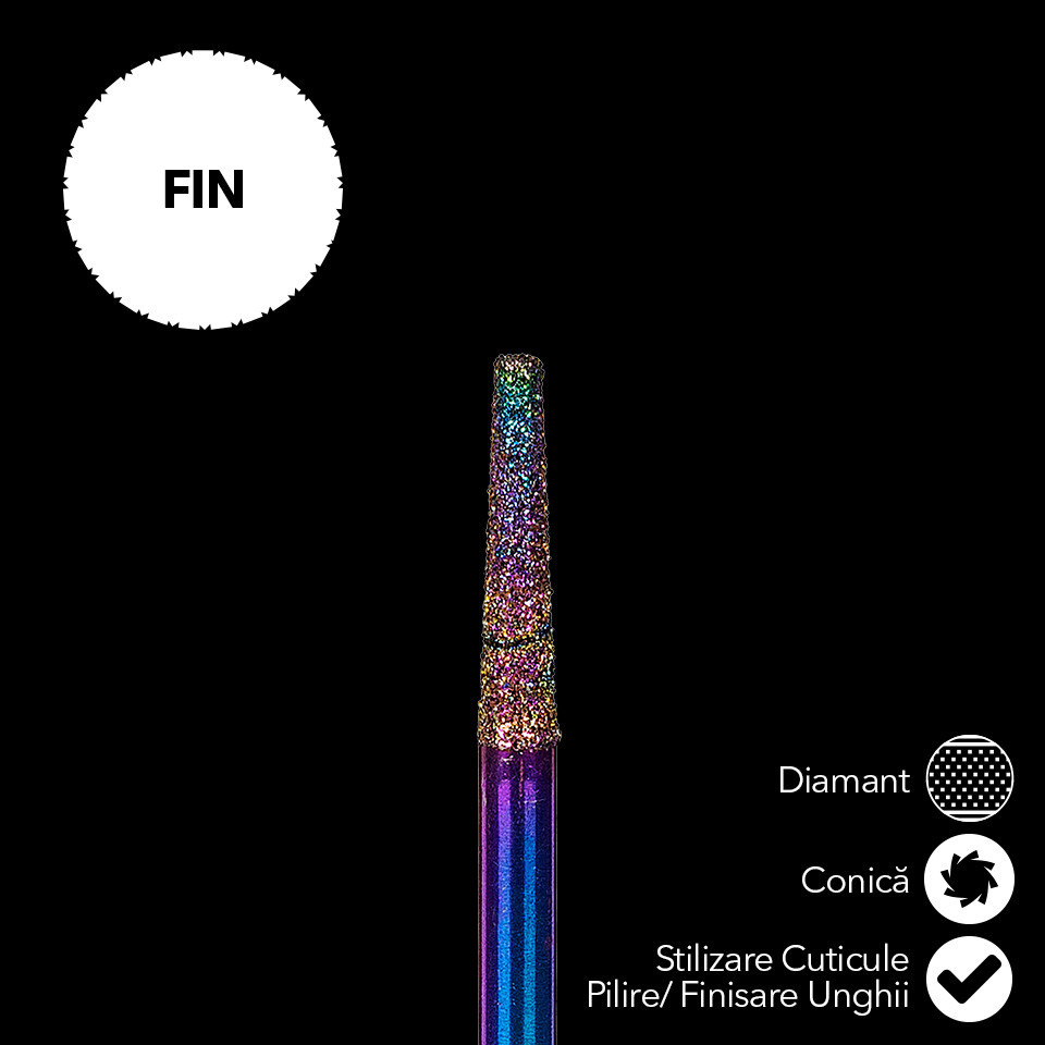Capat Freza Diamant LUXORISE Conica, fina CD12 este compatibila cu orice model de freza de pe piata, avand dimensiune standard. Bitul pentru freza este ideal pentru modificarea si ingrijirea unghiilor naturale, a cuticulei si a pielii intarite . Freza este potrivita atat pentru manichiura, cat si pentru pedichiura, deoarece permite manevrarea cu precizie si faciliteaza stilizarea cuticulelor si a unghiilor. Finisajele la cele mai inalte standarde calitative garanteaza un confort inalt in timpul utilizarii.