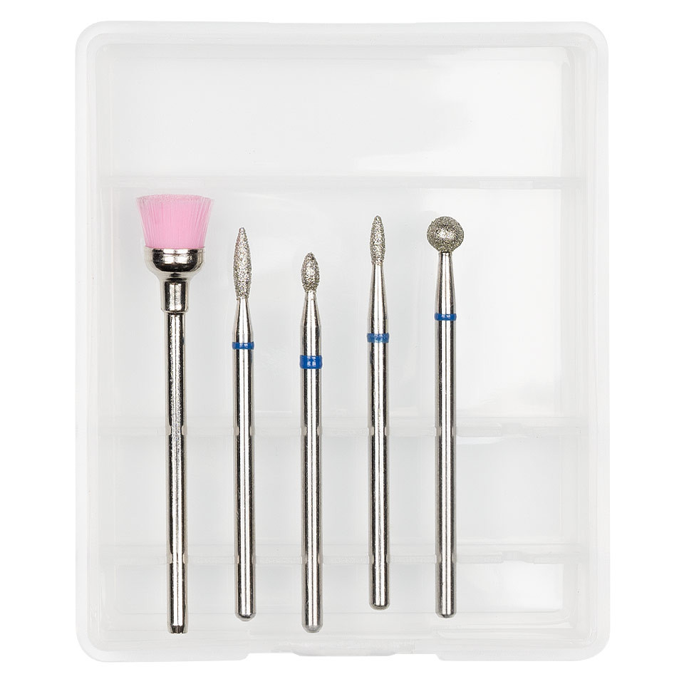 Capete Freza Unghii Diamantate LUXORISE #26, set 5 buc contine 4 bituri imbunatatite cu pudra de diamant pentru stilizare si un capat pentru curatare. Cele 5 capete sunt folosite pentru polizare si pot fi folosite atat la manichiuri, cat si la pedichiuri. Formele diferite permit efectuarea mai multor operatiuni de stilizare a unghiilor. Capetele de freza sunt compatibile cu orice tip de freza electrica. Avantaje: – Rezistenta indelungata – Precizie mare – Potrivita pentru ambele sensuri de rotatie ale frezei electrice de unghii – Stilizarea cuticulelor – Pregatire si nivelare unghii naturale – Curatare usoara – Ideal pentru matuirea suprafetei unghiei – Destinat pentru uz profesional
