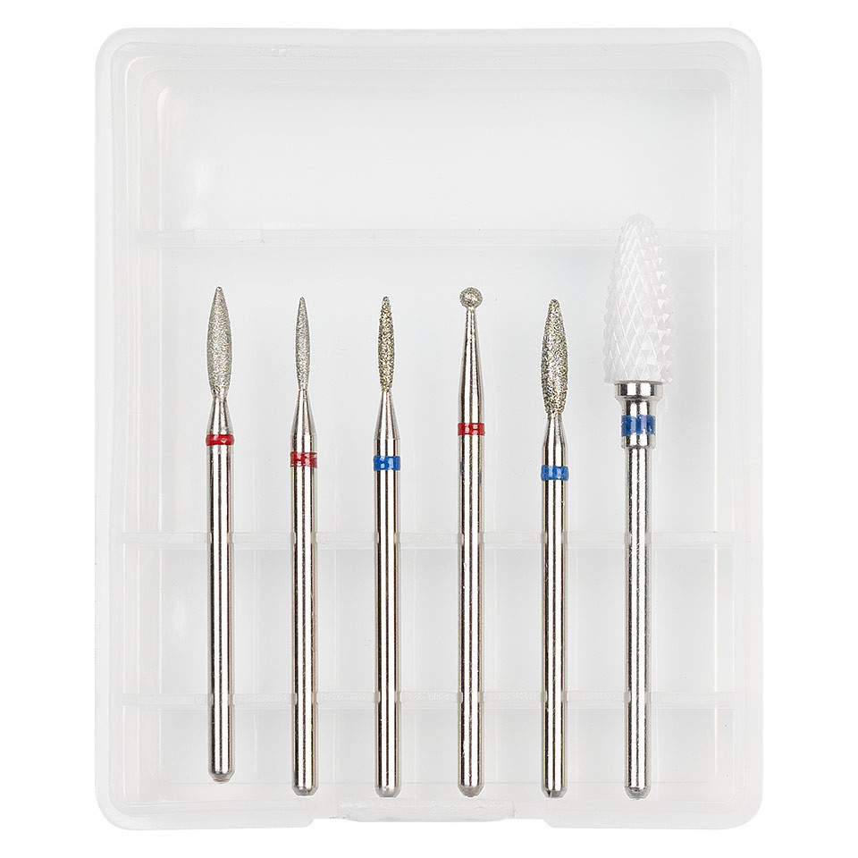Capete Freza Unghii LUXORISE #04 contine 5 bituri imbunatatite cu pudra de diamant si 1 bit ceramic, fiind special create pentru orice pila electrica. Cele 6 capete sunt folosite pentru polizare si pot fi folosite atat la manichiuri, cat si la pedichiuri. Formele diferite permit efectuarea mai multor operatiuni de stilizare a unghiilor. Capetele de freza sunt compatibile cu orice tip de freza electrica. Avantaje: – Rezistenta indelungata – Potrivita pentru ambele sensuri de rotatie ale frezei electrice de unghii – Stilizarea cuticulelor – Pregatire si nivelare unghii naturale – Curatare usoara – Ideal pentru matuirea suprafetei unghiei – Destinat pentru uz profesional