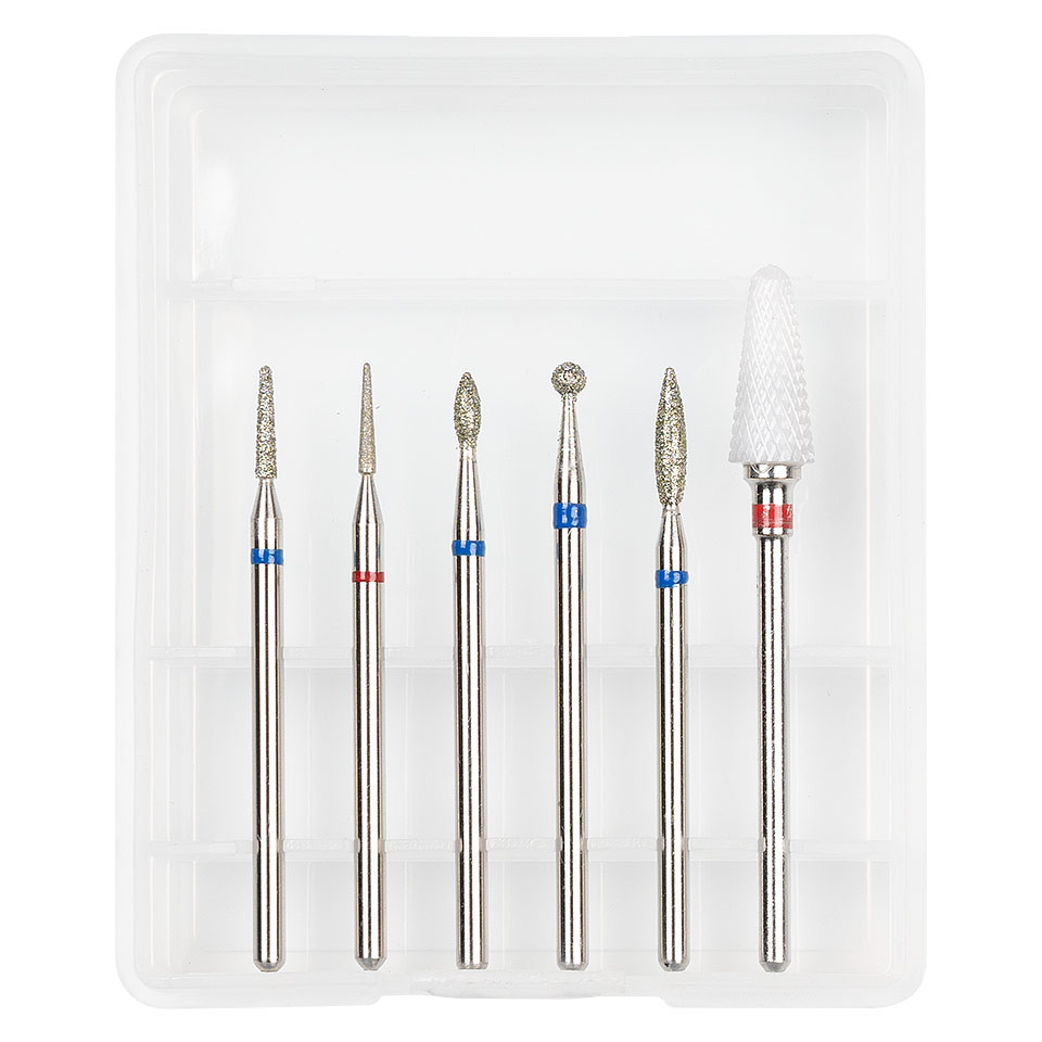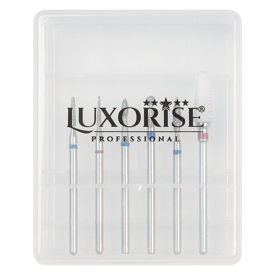 Capete Freza Unghii LUXORISE #09 contine 5 bituri imbunatatite cu pudra de diamant si 1 bit ceramic, fiind special create pentru orice pila electrica. Cele 6 capete sunt folosite pentru polizare si pot fi folosite atat la manichiuri, cat si la pedichiuri. Formele diferite permit efectuarea mai multor operatiuni de stilizare a unghiilor. Capetele de freza sunt compatibile cu orice tip de freza electrica. Avantaje: – Rezistenta indelungata – Potrivita pentru ambele sensuri de rotatie ale frezei electrice de unghii – Stilizarea cuticulelor – Pregatire si nivelare unghii naturale – Curatare usoara – Ideal pentru matuirea suprafetei unghiei – Destinat pentru uz profesional