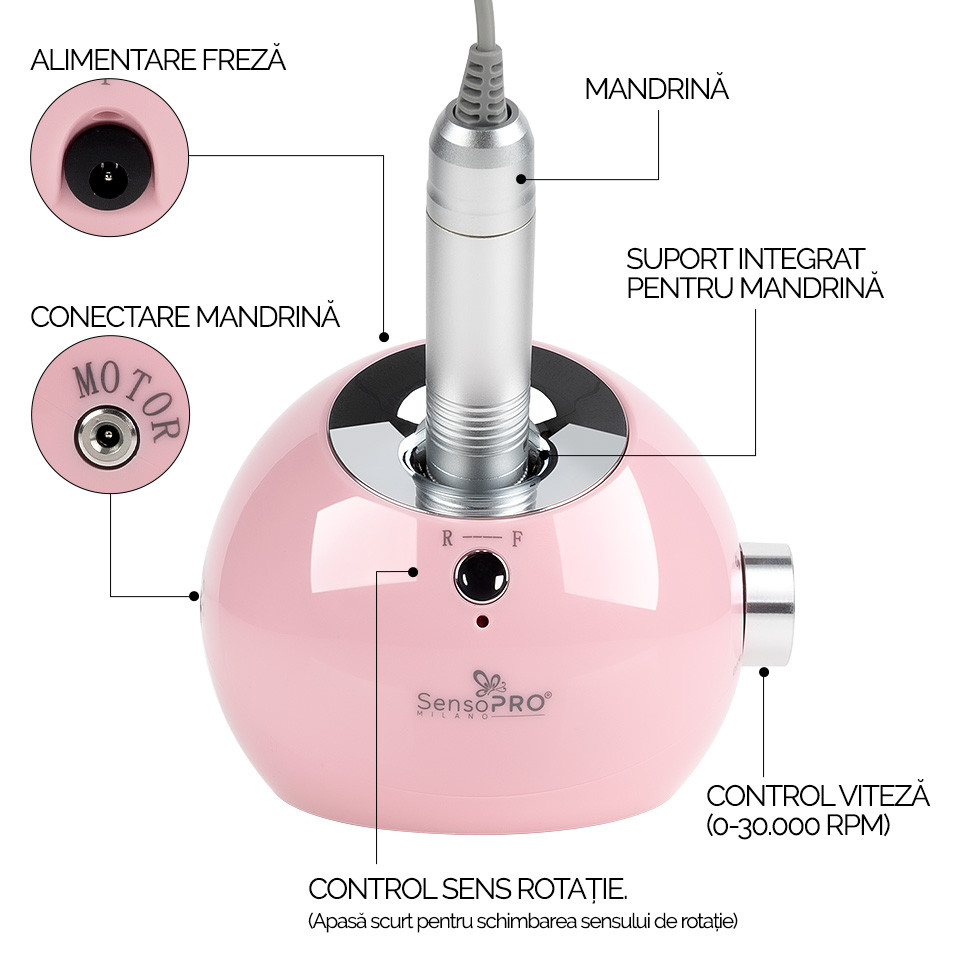 Freza Unghii Exclusive Nails SensoPRO Milano, 30.000 RPM, Pink