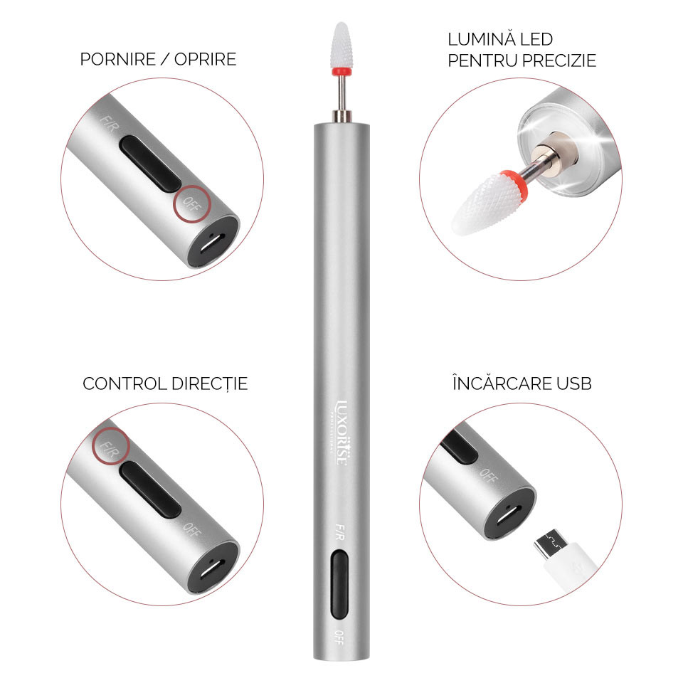 Freza Unghii cu Capat USB Titanium Travel - LUXORISE, Silver