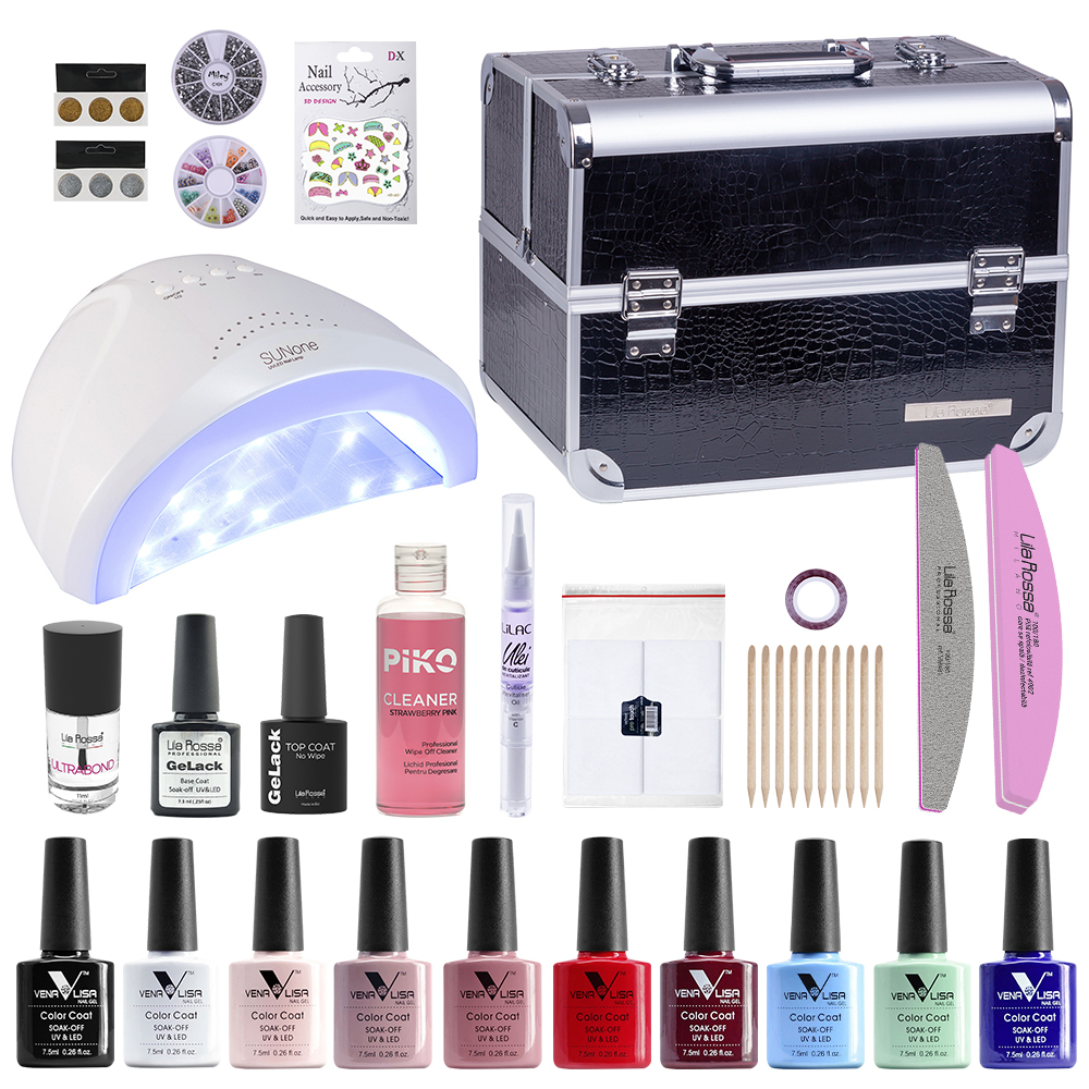 Kit Oja semipermanenta Venalisa, Super Pack, 10 oje Venalisa, lampa Sunone, geanta Snake, accesorii