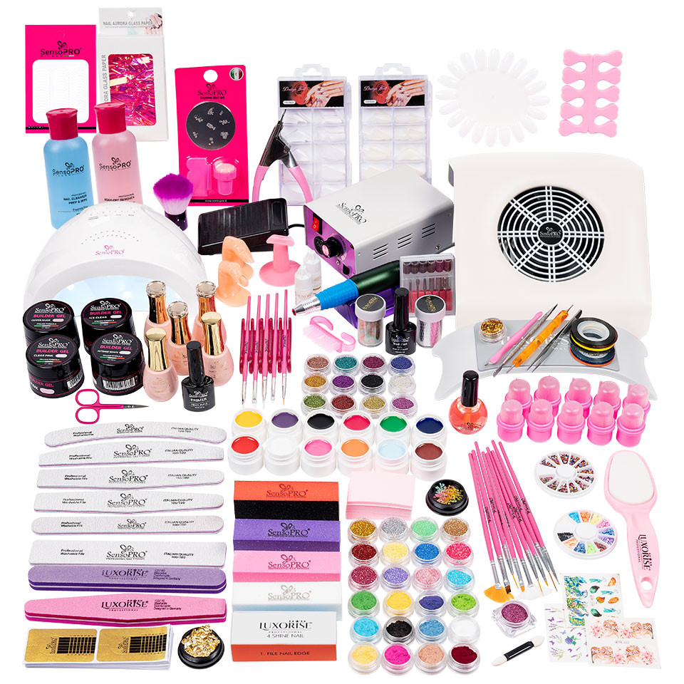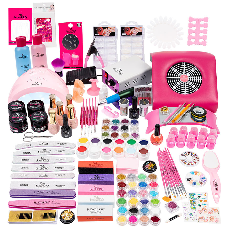 Alege Culoare Oja: Kit Unghii False Duo cu Gel UV si Oja Semipermanenta SensoPRO 10ml cuprinde toate produsele de care ai nevoie pentru a obtine o manichiura rezistenta si mereu in tendintele anului. Iti oferim cadou un set de geluri UV la achizitionarea acestui kit, iar livrarea este gratuita si rapida oriunde in tara. Kit Unghii False Duo cu Gel UV si Oja Semipermanenta SensoPRO contine urmatoarele produse : GRATUIT – GHID APLICARE UNGHII FALSE CU GEL UV SI OJA SEMIPERMANENTA: – Instructiuni de aplicare a unghiilor false cu gel/tips – Nail-Art – Realizarea diferitelor modele de unghii cu gel – Realizare unghii French cu gel – Tehnici de intretinere a unghiilor false cu gel – Instructiuni de aplicare a ojei semipermanente – Tehnica de indepartare a ojei semipermanente CADOU – Set 12 geluri UV Color GELURI UV – 1 x Gel Constructie Unghii SensoPRO Italia 15 ml – Ice Clear – 1 x Gel Constructie Unghii SensoPRO Italia 15 ml – Clear Pink – 1 x Gel Constructie Unghii SensoPRO Italia 15 ml – Intense White – 1 x Gel Camuflaj Unghii SensoPRO Italia 15 ml – Cover Nude III OJA SEMIPERMANENTA – 3 x Oja Semipermanenta SensoPRO 10ml (culori la alegere cu ajutorul selectorului de sub pret) – 1 x Base Coat oja semipermanenta SensoPRO 15ml – 1 x Top Coat oja semipermanenta SensoPRO 15ml APARATE ELECTRICE – 1 x Lampa UV LED 48W SensoPRO, DOUBLE Light LED, Culoare Alb si Roz – Uscare Rapida – este o lampa de calitate Premium cu LED-uri de tip DOUBLE Light LED (365nm + 405nm), de ultima tehnologie. Garanteaza o uscare rapida pentru orice tip de Gel UV si Oja Semipermanenta, cu un consum minim de energie, fara sa produca caldura. Este potrivita atat pentru manichiura cat si pentru pedichiura. Va rugam sa alegeti culoarea lampii cu ajutorul selectorului de sub pret! – 1 x Freza Unghii Profesionala PowerPRO Ultra, LUXORISE – 1 x Aspirator praf unghii POWER PRO 30W – SensoPRO Milano LICHIDE ADJUVANTE – 1 x Primer Unghii SensoPRO – Non Acid 10 ml – 1 x Cleanser unghii SensoPRO Milano, 60ml – 1 x Soak-Off Remover SensoPRO Milano, 60ml – Indepartare gel, oja semipermanenta, tipsuri – 1 x Ulei Cuticule cu Pensula SensoPRO, 15 ml TIPSURI – 1 x Set 100 buc. tipsuri naturale – 1 x Set 100 buc. tipsuri albe – 1 x Cleşte ghilotina pentru tipsuri – 2 x Adeziv special pentru tipsuri Luxorise NAIL-ART – 1 x Sclipici Glitter Unghii Pulbere – Set 12 bucati – 1 x Caviar unghii set 12 bucati – 1 x Catifea Unghii – Set 12 cutiute multicolore – 1 x Paiete Unghii diverse modele in functie de stoc – 1 x Folie Unghii Holografica, Efect Aurora culoare in functie de stoc – 1 x Foita Unghii culoare in functie de stoc – 1 x Pigment unghii Ice Effect culoare in functie de stoc – 1 x Flori Uscate Unghii diverse modele in functie de stoc – 1 x Carusel strasuri circulare diverse culori – 1 x Carusel fimo diverse culori si forme – 2 x Folie de Transfer Unghii diverse modele in functie de stoc – 1 x Adeziv Folie Transfer SensoPRO 10 ml – 1 x Sticker 3D diverse forme – 2 x Tatuaje unghii cu desprindere in apa, diverse modele – 10 x Benzi Decor unghii diverse modele si culori – 1 x Benzi Manichiura French SensoPRO Milano #02 – 1 x Stampila unghii cu razuitoare speciala ACCESORII – 1 x Suport Mana cu fete moi din material de calitate – 1 x Pila buffer roz cu 4 fete – 1 x Pila buffer mov cu 4 fete – 1 x Pila buffer alba cu 4 fete – 1 x Pila buffer portocaliu cu 4 fete – 1 x Pila Buffer pentru luciu multicolor cu 4 fete – 100 x Sabloane constructie unghie – 1 x Pila banana – 1 x Pila romb – 2 x Pile semiluna – 2 x Pile drepte – 1 x Pila Lavabila Dreapta cu 2 fete – 1 x Pila Lavabila Romb cu 2 fete – Set 15 Pensule Manichiura SensoPRO Italia – 1 x Punctator unghii cu 2 capete diferite – 1 x Suport Pensule cu 5 sloturi – 1 x Instrument special pentru cuticule, cu doua capete – 1 x Cutitas Cuticule – 1 x Forfecuta Cuticule SensoPRO Milano – 1 x Margareta cu 20 petale pentru expunere modele unghii – 1 x Suport Deget – 1 x Deget de Practica fara Unghie – 1 x Deget de Practica cu Unghie – 2 x Despartitoare de Degete – 1 x Periuta Praf unghii – 1 x Pila de Calcaie PUMICE STONE PRO – LUXORISE – 1 x Pamatuf praf unghii – 200 x Servetele unghii fara fibre – 10 x Capsule unghii refolosibile pentru indepartarea ojei semipermanente – 1 x Penseta dreapta pentru manichiura