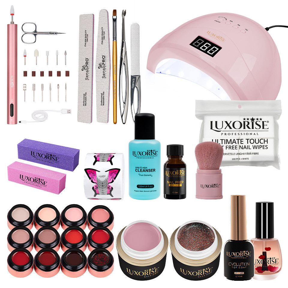 Kit Unghii Gel LUXORISE Exclusive Elite + Freza & Lampa UV / LED
