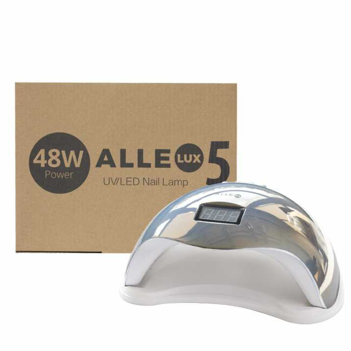 Lampa LED Allelux 5 Rainbow Silver este soluția perfectă pentru realizarea unei manichiuri sau pedichiuri profesionale, chiar la tine acasă. Cu o putere de 48W și o lumină albă, sănătoasă pentru ochi și corp, lampa Allelux 5 asigură polimerizarea rapidă și uniformă a tuturor gelurilor, lacurilor hibride și altor preparate fotopolimerizante.