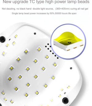 Detalii produs: Numar de LED-uri: 45; Putere: 220W; Adaptor: 100-240 V 50/60Hz; Dimensiuni: 231mm x 108mm x 204mm; Cronometru: 10,30,60,99 secunde; Ureche potrivita pentru purtare; Carcasa de telefon; Culoare: alb; Culoarea nasturii: aur roz. GARANTIE 1 AN!