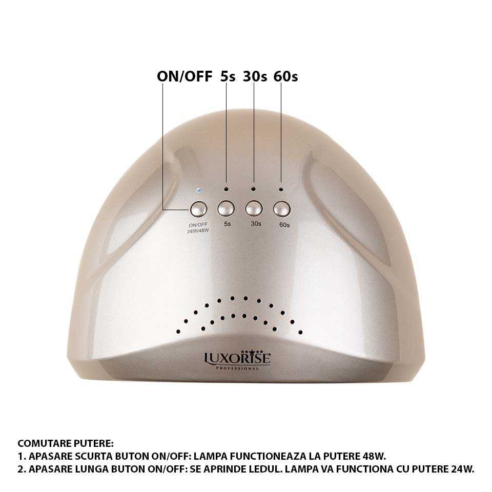 Esti profesionista si folosesti produse de Aparatura Unghii de TOP? Ai ajuns unde trebuie. Cumpara acum Lampa UV LED 48W SUNONE XT – LUXORISE Germania, Gold si beneficiezi de preturi excelente si calitate extra. LUXORISE este un brand ce te va ajuta sa ai cele mai bune rezultate in Aparatura Unghii