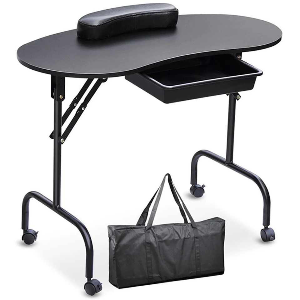 O masa de manichiura profesionala, pliabila, cu sertar si suport pentru incheietura mainii, ideala pentru uz personal sau profesional.