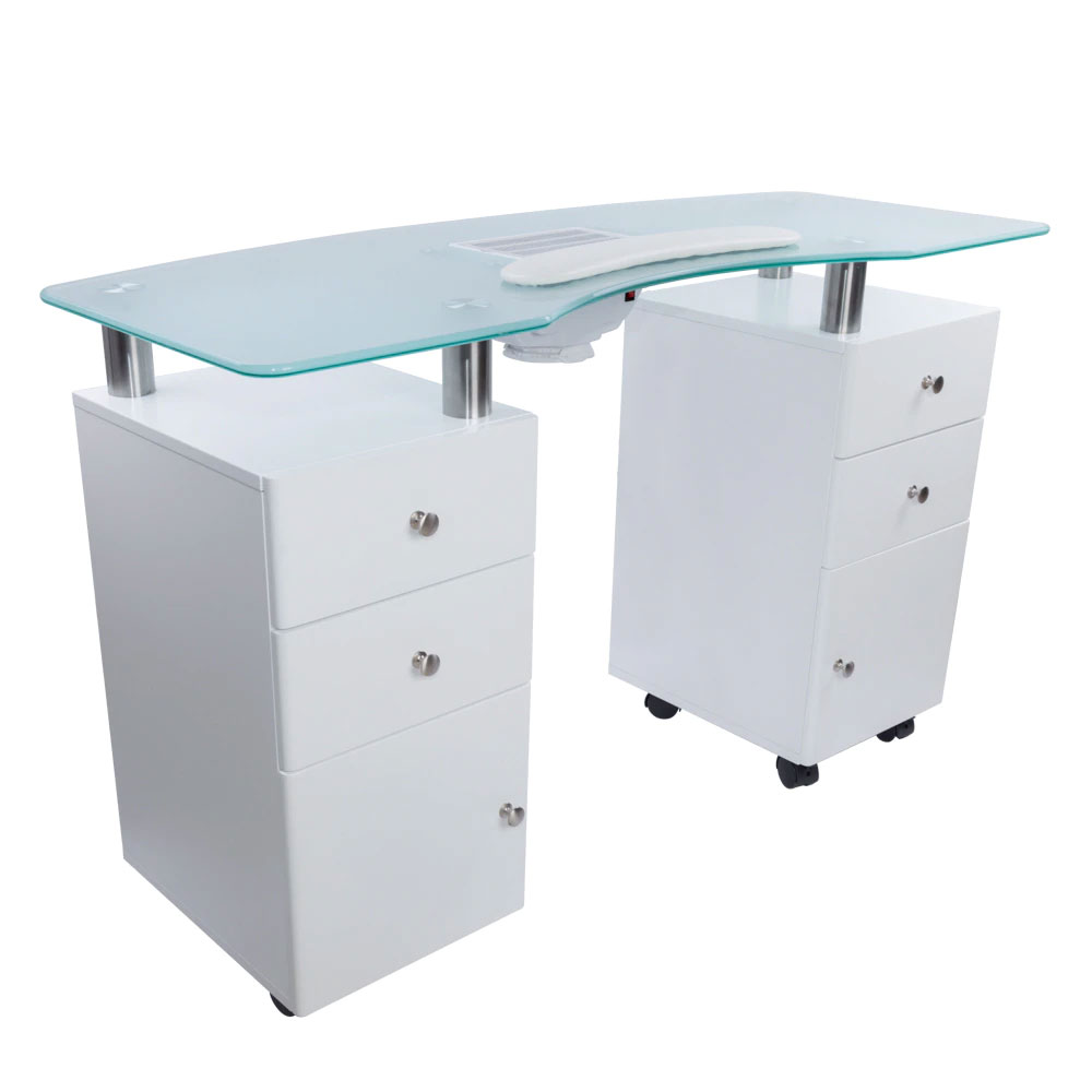 Blatul de sticla este rezistent si usor de curatat, fiind ideal pentru lucrul cu produse de manichiura.