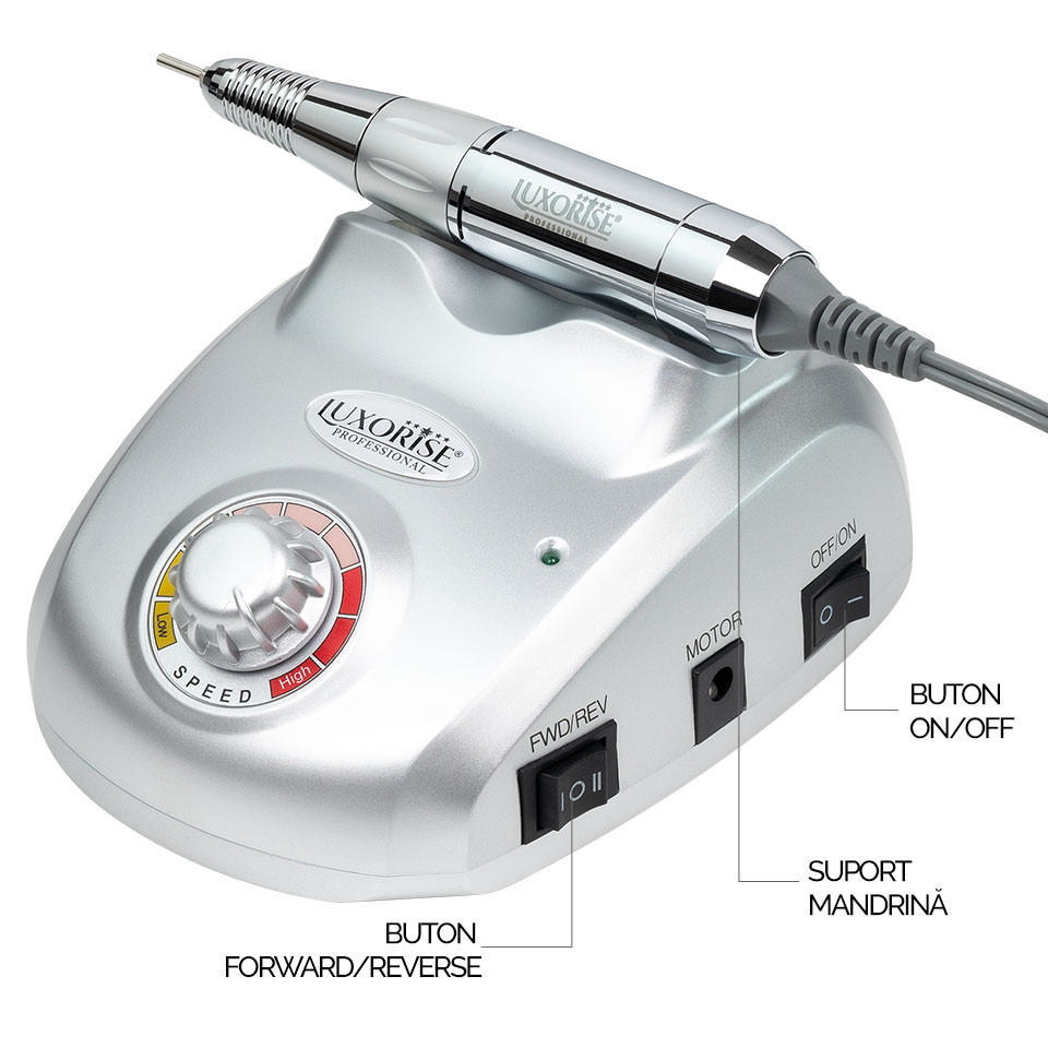 Esti profesionista si folosesti produse de Aparatura Unghii de TOP? Ai ajuns unde trebuie. Cumpara acum Pila Electrica Profesionala PowerPRO Ultra – LUXORISE Germania, 30.000 RPM, Silver si beneficiezi de preturi excelente si calitate extra. LUXORISE este un brand ce te va ajuta sa ai cele mai bune rezultate in Aparatura Unghii