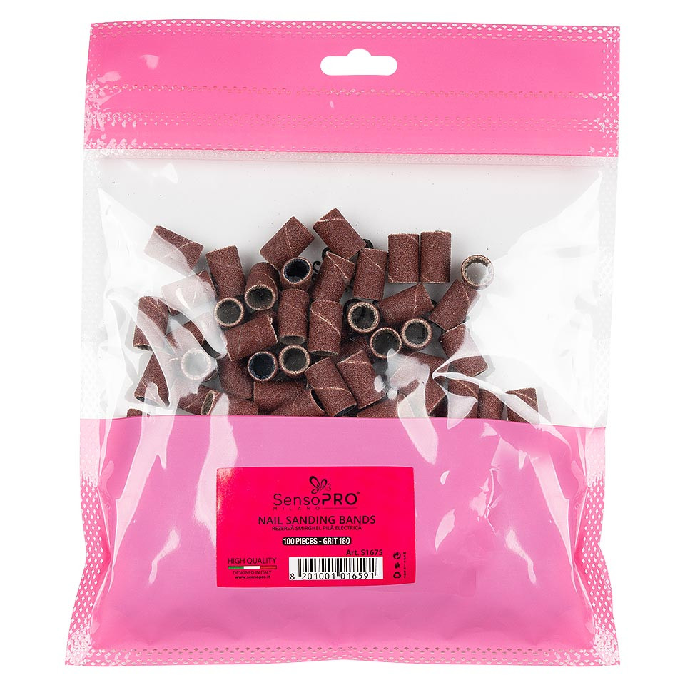 Rezerve Smirghel SensoPRO Milano pentru Pila Electrica, duritate 180 sunt potrivite pentru indepartarea luciului natural al unghiei si finisarea manichiurilor. Pot fi folosite la manichiuri cu oja semipermanenta, acryl, gel sau polygel. Duritate 180, indica faptul ca acestea au o granulatie mare si suprafata fina. Caracteristici: – Granulatie: 180 – Dimensiune: 1.27 x 0.87cm – Continut pachet: 100 buc