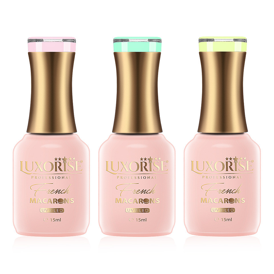 Alege-ti nuantele de French Macarons pe care le adori! Macarons Collection este destinatia apetisanta de nuante pastelate, sofisticate si catifelate de care te indragostesti iar si iar. Are o formula premium si o fuziune perfecta de pigmenti delicati pentru manichiuri pline de emotie, atitudine si de un stil inconfundabil. Aplicabilitate: Se aplica pe unghia naturala, cu gel, polygel, acryl pentru realizarea de manichiuri si pedichiuri. Avantaje: ✔️ Formula superioara ✔️ Aderenta excelenta ✔️ Vascozitate medie ✔️ Nuante fermecatoare ✔️ Aplicare usoara ✔️ Rezistenta indelungata ✔️ Produs recomandat de profesionisti Aplicare & Recomandari: 1. Pregatirea unghiilor – Impingeti si stilizati cuticulele – Matuiti suprafata unghiilor cu o pila buffer – Curatati excesul de praf cu o perie de unghii – Aplicati Nail Prep sau Primer si lasati sa se usuce – Aplicati Base Coat si polimerizati 30-60s in lampa LED sau 120s in lampa UV 2. Aplicare oja semipermanenta Evolution LUXORISE – Aplicati un strat subtire de oja semipermanenta – Polimerizati in lampa LED 60s sau in lampa UV 120s 3. Finalizare manichiura / pedichiura – Aplicati Top Coat si polimerizati 60s in lampa LED sau 120s in lampa UV – Hidratati cu ulei de cuticule