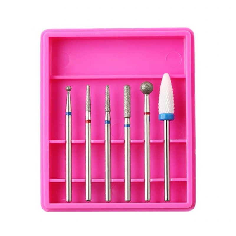 Set 6 Capete Freza Unghii, Pedichiura, Cuticule Si Indepartare Gel / Oja Semi, ROZ – R2